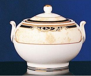Cornucopia to bez wątpienia jedna z najbardziej efektownych kolekcji angielskiej marki Wedgwood. Klasyczny wzór cukiernicy wykonanej z najwyższej jakości porcelany kostnej, ozdobiony został misternym, złotym wzorem inspirowanym mitycznym „Rogiem Obfitości”. Bogaty dekor umieszczony na naczyniach przedstawia mistyczne stworzenia, które przenoszą nas w świat fantazji. Produkty z kolekcji Cornucopia dedykowane są dla osób ceniących niebanalną klasykę. Lekko kremowy kolor cukiernicy w połączeniu ze złotym zdobieniem, daje efekt nonszalanckiej elegancji. Złocenia pokryte zostały 22-karatowym złotem. Najwyższa jakość użytych materiałów oraz precyzja wykonania sprawiają, że kolekcja jest jedną z bardziej wyjątkowych w ofercie angielskiej marki Wedgwood. Produkty z serii będą stanowiły idealny pomysł na prezent dla wszystkich wielbicieli klasyki z wyraźnym charakterem. Właściwości: - cukiernica, - wymiary: 8 x 10,5 (wysokość x szerokość) cm, - materiał: porcelana kostna Bone Premium, - złocenia pokryte 22 - karatowym złotem, - produkt idealny na prezent, posiada indywidualne opakowanie prezentowe, - możliwość mycia w zmywarce, - kolekcja: Cornucopia. Wedgwood to jedna z najsłynniejszych i najbardziej ekskluzywnych manufaktur porcelany na świecie. Produkty marki to synonim klasyki i elegancji na najwyższym poziomie. Marka założona już w 1759 roku przez Josiah Wedgwood`a – znakomitego rzemieślnika i garncarza zyskała uznanie prawdziwych miłośników luksusowej porcelany, goszcząc w domach na całym świecie. Wedgwood to bez wątpienia jeden z angielskich symboli.