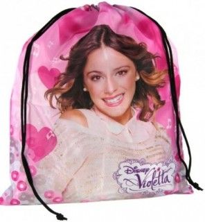 Worek na obuwie ozdobiony grafiką z serialu Violetta. Worek wykonany z materiałów bardzo dobrej jakości. Idealny na szkolne treningi jak i na basen. Posiada 2 sznurki ściągacze służące do zamykania. Worek dzięki podwójnym sznurkom można nosić jako mały plecaczek. Wymiary worka: ok. : 42 x 33 cmIdealny prezent dla fanów serialu!