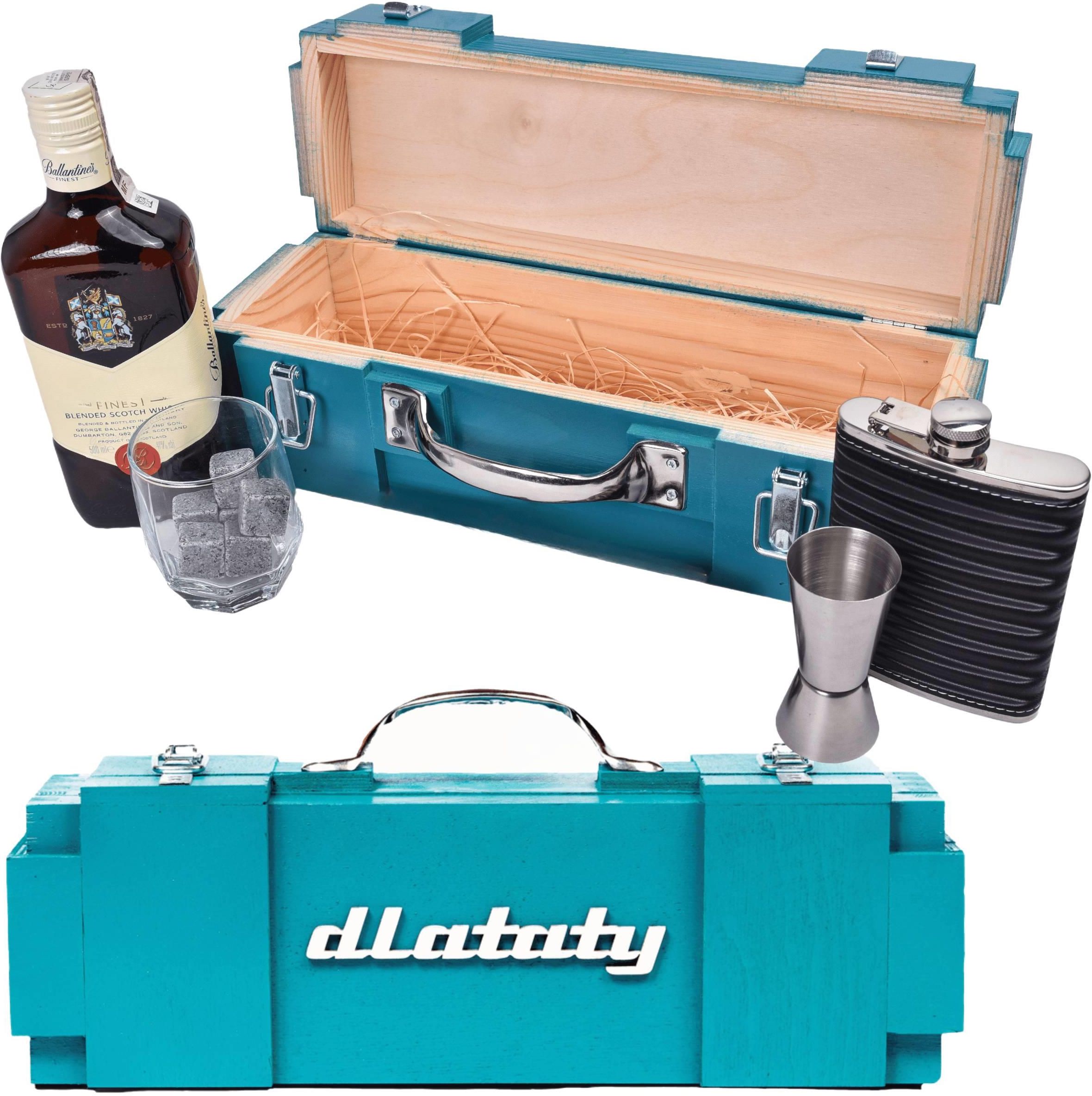 Zestaw Premium Dla Taty Ojca Urodziny Skrzynka Na Alkohol Piersiówka Kostki Szklanka Kieliszek Masywna Mocna Drewniana Dobczyce