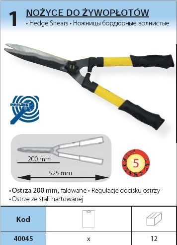 PROLINE NOŻYCE DO ŻYWOPŁOTÓW (40045) Nożyce do żywopłotów Proline to solidne narzędzie, które z pewnością znajdzie swoje miejsce w każdym ogrodzie. Przeznaczone do precyzyjnego przycinania żywopłotów oraz krzewów, stają się nieocenionym wsparciem dla każdego ogrodnika. Dzięki wysokiej jakości wykonania i przemyślanej konstrukcji, narzędzie to pozwala na wygodne i efektywne prace pielęgnacyjne. Zapraszamy do zapoznania się z kluczowymi cechami, które sprawiają, że ten produkt wyróżnia się na rynku. Kluczowe cechy nożyc Proline Na rynku dostępnych jest wiele typów nożyc ręcznych, co umożliwia znalezienie narzędzia idealnego do każdego zadania. Wśród najpopularniejszych modeli wyróżniamy: nożyce do żywopłotów, doskonałe do formowania i przycinania żywopłotów oraz dużych krzewów, nożyce do gałęzi, przeznaczone do cięcia grubszych gałęzi, które wymagają większej siły, nożyce do trawy, idealne do precyzyjnego przycinania krawędzi trawnika, nożyce sekatorowe, często stosowane do cięcia kwiatów i delikatniejszych roślin, nożyce kowadełkowe, charakteryzujące się większą siłą cięcia, idealne do twardszych materiałów. Wybór odpowiednich nożyc zależy od rodzaju prac, jakie zamierzamy wykonać, a także od specyfiki roślin, które chcemy pielęgnować. Nożyce Proline wyróżniają się na tle konkurencji dzięki swojej funkcjonalności i solidności. Materiał i konstrukcja ostrzy Mówiąc o narzędziu Proline, warto zwrócić uwagę na materiał i konstrukcję ostrzy. Ostrze wykonane ze stali hartowanej o wysokiej twardości zapewnia długotrwałą ostrość oraz dużą wytrzymałość, co przekłada się na efektywność pracy. Długość robocza wynosząca 20 cm odnosi się do specyfikacji produktu, co czyni je idealnym narzędziem do precyzyjnego cięcia. Całkowita długość nożyc wynosząca 540 mm sprawia, że narzędzie jest łatwe w obsłudze i umożliwia dotarcie do trudno dostępnych miejsc. Dodatkowo, regulacja docisku ostrzy za pomocą specjalnej śruby dociskającej pozwala ustawić je w optymalnym położeniu, minimalizując zbędne tarcia i wydłużając czas bezserwisowej eksploatacji. Waga i ergonomia Waga narzędzia wynosząca 5 kg zapewnia stabilność podczas pracy. Odpowiednio wyważona konstrukcja przyczynia się do komfortu użytkowania, co jest istotne, zwłaszcza przy dłuższych sesjach cięcia. Ergonomiczne uchwyty, które są istotne dla wygody pracy, zapewniają pewny chwyt i bezpieczeństwo podczas intensywnego użytkowania. Aby ułatwić użytkownikom podjęcie decyzji, warto wymienić kluczowe cechy narzędzia Proline: Materiał ostrzy: stal hartowana, Długość robocza: 20 cm, Waga: 5 kg, Regulacja docisku ostrzy: tak, poprzez specjalną śrubę, Ergonomiczne uchwyty: tak, Maksymalna średnica cięcia: dostosowana do grubości gałęzi, Blokada ostrzy w pozycji zamkniętej: tak. Maksymalna średnica cięcia jest istotna, szczególnie dla osób planujących prace w ogrodzie. Dzięki odpowiednio dobranym nożycom, można precyzyjnie przycinać gałęzie o różnych parametrach. Mechanizm cięcia i dodatkowe elementy Mechanizm cięcia zastosowany w narzędziu Proline, jak również możliwości regulacji ostrzy, sprawiają, że narzędzie jest funkcjonalne i dostosowane do różnych wymagań. Użytkownicy mogą łatwo regulować szerokość cięcia, co zwiększa wszechstronność narzędzia. Dodatkowo, blokada ostrzy w pozycji zamkniętej wpływa na bezpieczeństwo przechowywania nożyc. Jeśli chodzi o dodatkowe elementy, które mogą być dołączone do produktu, warto zwrócić uwagę na pokrowiec ochronny na ostrza. Taki dodatek zwiększa wartość oferty i zapewnia dodatkową ochronę narzędzia, co z pewnością zainteresuje wielu ogrodników. Narzędzie Proline może być interesującym rozwiązaniem dla osób poszukujących narzędzi do pielęgnacji ogrodu, które łączą w sobie wysoką jakość wykonania, funkcjonalność oraz komfort użytkowania. Dzięki nim prace ogrodnicze stają się przyjemnością, a efekty przycinania roślin zachwycają swoim wyglądem.