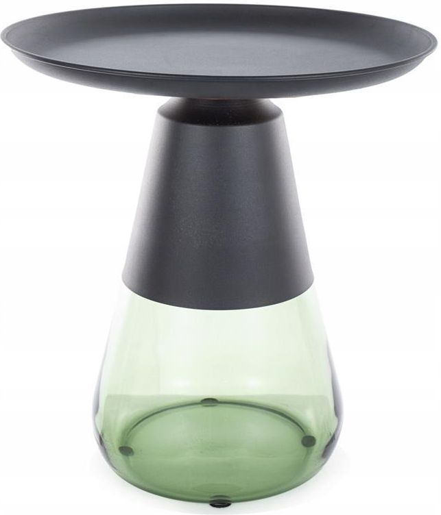 Okrągły stolik kawowy TIFFANY A z cieniowaną podstawą Stolik kawowy TIFFANY A to wyjątkowy mebel, który zachwyca swoim designem, doskonale sprawdzając się w nowoczesnych aranżacjach wnętrz. Jego unikalna forma i przemyślane detale czynią go centralnym punktem każdego salonu, w którym się znajdzie. Jednym z najbardziej charakterystycznych elementów stolika kawowego jest jego nietuzinkowa podstawa. Została zaprojektowana jako pojedyncza noga, która rozszerza się ku dołowi, nadając stolikowi stabilności i nowoczesnego wyglądu. Dolna część podstawy wykonana jest ze szkła o zielonej, cieniowanej barwie, co dodaje jej wyjątkowego charakteru. Cieniowanie szkła tworzy interesujący efekt wizualny, który przyciąga wzrok i nadaje stolikowi głębi. Blat stolika ma kształt okręgu i jest wykonany z metalu o czarnej, matowej barwie. Matowe wykończenie dodaje mu nowoczesnego, minimalistycznego charakteru, który doskonale wpisuje się w aktualne trendy wnętrzarskie. Dodatkowym atutem blatu są podwyższone krawędzie, które nie tylko pełnią funkcję dekoracyjną, ale również praktyczną. Dzięki nim przedmioty umieszczone na stoliku takie jak kubki, książki czy ozdoby, są zabezpieczone przed przypadkowym strąceniem. Górna część podstawy stolika wykonana jest z tego samego czarnego, matowego metalu co blat, co tworzy harmonijną i spójną konstrukcję. Taka jednolitość materiałów i kolorystyki podkreśla nowoczesny charakter mebla i sprawia, że jest on elegancki, ale i subtelny w swojej formie. Stolik kawowy TIFFANY A jest doskonałym wyborem do wnętrz minimalistycznych, loftowych oraz awangardowych. Jego nowoczesny design i proste, ale efektowne linie sprawiają, że pasuje do różnych stylów dekoracyjnych. W minimalistycznych wnętrzach będzie stanowił subtelny, ale wyraźny akcent, podczas gdy w przestrzeniach loftowych podkreśli surową elegancję i industrialny charakter. W awangardowych aranżacjach okrągły stolik kawowy doda wyrafinowanego i artystycznego wyglądu. Cechy produktu nietuzinkowy stolik kawowy do salonu, blat oraz część podstawy z metalu o czarnej matowej barwie, dolna część podstawy ze szkła o zielonym cieniowanym kolorze, do samodzielnego montażu, w swojej ofercie posiadamy szeroki wybór mebli pozwalających na kompleksowe wyposażenie mieszkania