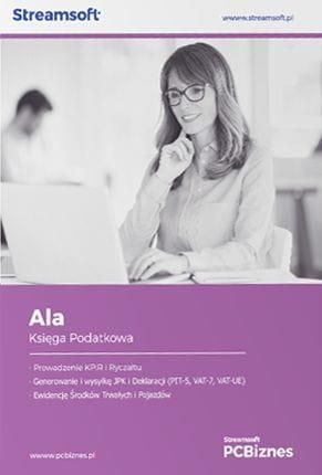 Streamsoft ALA księga podatkowalicencja elektroniczna, dla biur rachunkowych bez limitu firm, 1 stanowisko- dożywotnia licencja na Program- 12 miesięcy bezpłatnych aktualizacji- 12 miesięcy bezpłatnej pomocy telefonicznej oraz mailowej.- Po okresie 12 miesięcy abonament na aktualizacje i pomoc jest płatny zgodnie z aktualnymi warunkami licencji.KPiR, Ryczałt, Rejestry VATProgram księgowy „Ala#8221; pozwala na prowadzenie i rozliczanie dwóch podstawowych form księgowości uproszczonej – Podatkowej Księgi Przychodów i Rozchodów (KPiR) oraz Ewidencji Przychodów (Ryczałt) wraz z Rejestrem VAT.JPK i DeklaracjeGenerowanie, sprawdzenie i przesłanie e-Deklaracji oraz JPK do Urzędu Skarbowego. W programie księgowym Ala obsługiwane są wszystkie wymagane deklaracje, m.in.: PIT-5(L), PIT-5(k), VAT-7, VAT-7(k), VAT-UE, a formularze deklaracji są aktualizowane automatycznie.Ewidencja Środków Trwałych i PojazdówEwidencja majątku trwałego firmy, w tym m.in. obliczanie amortyzacji oraz wycena środków trwałych. Dodatkowo w programie księgowym Ala możliwe jest prowadzenie wykazu przebiegu pojazdów, w tym spis i rozliczanie kosztów eksploatacji oraz rejestracja przebiegu.Import danych z innych programówProgram księgowy Ala umożliwia import i automatyczne księgowanie faktur z: Programu Ewa – Faktury i Magazyn Internetowej aplikacji Streamsoft Firmino Pliku JPK_FA wygenerowanego przez dowolny system.