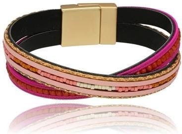 Bransoletka z magnezem Yvon wykonana z najwyższej jakości metalu antyalergicznego, koralików Miyuki Beads, skóry naturalnej.Długość bransoletki: 19 cmKolor: Różowy