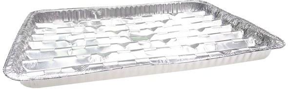 Tacki aluminiowe 348x223mm 3szt Aec AEC Tacki do grilla 3 szt duże AEC Materiał: aluminium Kolor: srebrny Zastosowanie: do ciepłych Kształt: prostokątny Ilość w zestawie: 3 sztuki Wymiary jednej sztuki: szerokość: 223 mm długość: 348 mm wysokość: 20 mm Waga: 0,2 kg Nie stosować do produktów o charakterze kwaśnym. Tacki na grilla idealnie nadają się do smażenia różnego rodzaju mięs i warzyw. Posiadają funkcjonalną budowę, która zapewnia prawidłowy przepływ ciepła oraz odprowadzenie tłuszczu, dzięki czemu gwarantują przyrządzenie smacznych, zdrowych i aromatycznych potraw.