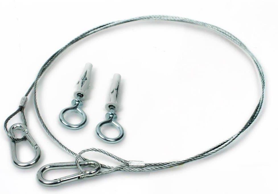 Zestaw linek do zawieszania ramZestaw dwóch linek niezbędnych przy montażu ram zatrzaskowych, posiadających odpowiednie zawieszki. W zestawie zastosowano dwa karabińczyki co zabezpiecza ramę. Oba końce posiadają zaciśniętą na stałe pętelkę. Zestaw zawiera: 2 x linka stalowa 2mm, 2 x karabińczyk 2 x kołek rozporowy, wkręt z oczkiem, Linki możemy przygotować pod każdą długość.