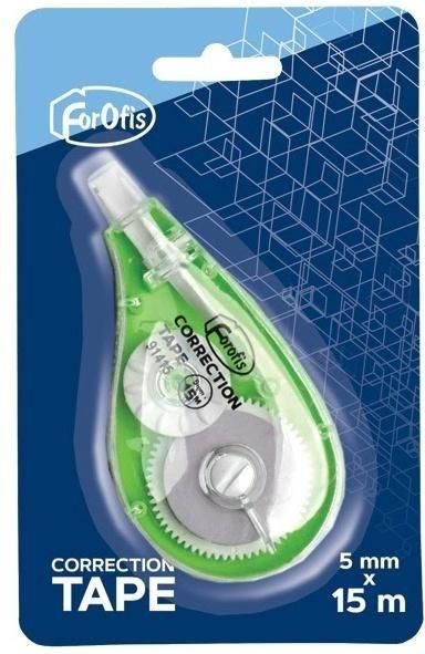 Korektor w taśmie, szerokość 5 mm, długość 15 metrów. Ergonomiczny kształt obudowy dopasowany do dłoni. Wysokiej jakości taśma korekcyjna odporna na zerwanie z idealnie przylegającą do powierzchni papieru warstwą korygującą, po której można pisać bezpośrednio po zastosowaniu. Do użytku na większości rodzajów papieru. Przezroczysta obudowa pozwala śledzić pozostałą ilość taśmy korygującej. Estetycznie zapakowany w twardy blister. Obrotowa końcówka pozwala używać go w dwóch płaszczyznach.