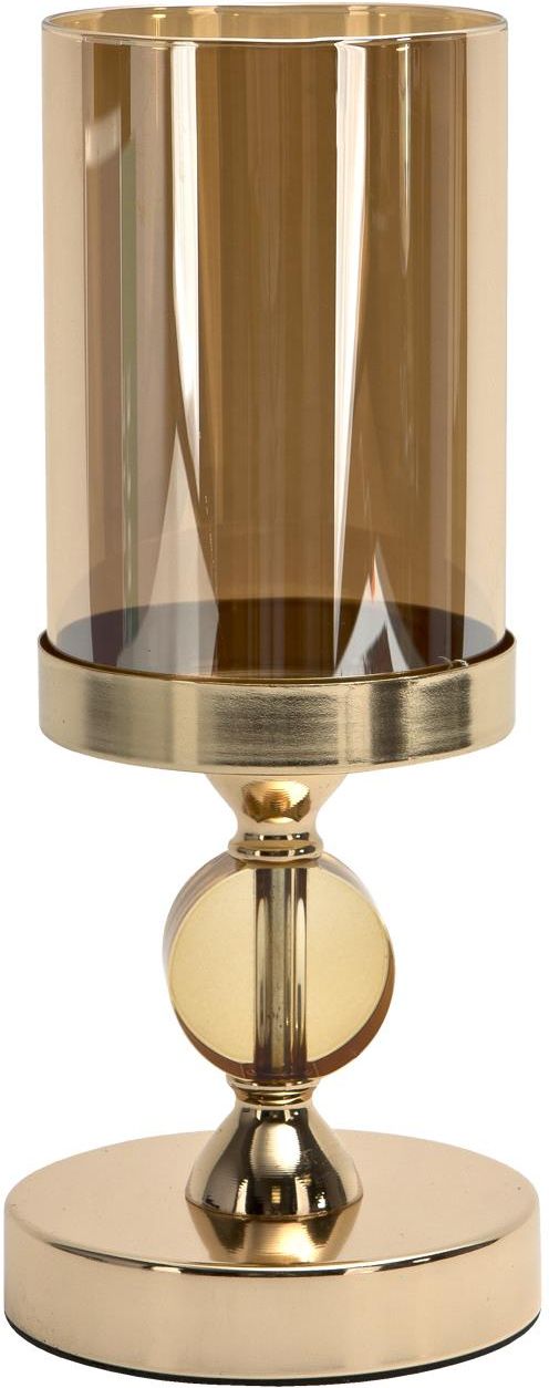 Efektowny świecznik szklany na metalowej nóżce w kolorze złota z kulami szkła. Bardzo dostojnie się prezentuje. Jest to doskonały element wystroju wnętrza oraz dekoracji. Niezawodny podczas spotkań rodzinnych przy stole. Świecznik w formie kielicha z powodzeniem udekoruje wigilijny stół. Oprawa stołu nabierze luksusowego charakteru. Blask świecy wydobywający się z kielicha wniesie do wnętrza ciepły i przytulny nastrój. Świecznik szklany to dekoracja sama w sobie. Prezentuje się nieziemsko nawet bez świecy. Przyozdobi nie tylko stół, ale także ławy, komody czy półki. Może ozdobić także przeszkloną witrynę. Czarka świecznika wykonana jest ze szkła w kolorze miodowym. Taka konstrukcja sprawia, że światło świecy rozproszone jest w ciekawy sposób i tworzy wokół przyjemną aurę. Metalowa nóżka jest pokryta złotym kolorem, a na niej umieszczone szklane kule, które równie efektownie odbija światło. Całość tworzy niezwykle urokliwą kompozycję. Świecznik szklany to doskonały pomysł na prezent. Szczegóły produktu Producent: Art-Pol Model: 168991 Materiał: szkło, metal Kolor. złoty, miodowy Kształt: okrągły Dostępne są inne rodzaje świeczników z tej kolekcji. Skompletuj je wszystkie i stwórz cudowny klimat we wnętrzu z odrobiną luksusu. Wszelkie dodatki na zdjęciach służą celom dekoracji.