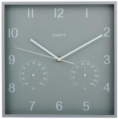 Zegar ścienny ARTICASA 28 cm Szary to nowoczesny i funkcjonalny model z czytelnymi cyframi arabskimi, wyposażony w termometr i higrometr. Dzięki zasilaniu na baterię AA oraz wbudowanemu uchwytowi do zawieszenia jest praktycznym dodatkiem do każdego wnętrza.