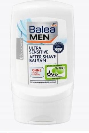 Balea MEN Balsam po goleniu Ultra sensitive 100 ml Balsam po goleniu Balea MEN łagodzi podrażnienia i zaczerwienienia skóry po goleniu. Szczególnie łagodna formuła została opracowana specjalnie dla potrzeb skóry wrażliwej. Nieprzyjemne podrażnienia zostają zauważalnie zredukowane zaraz po jego zastosowaniu, a chłodna świeżość pozwala doświadczyć przyjemnego uczucia na skórze. W produkcji balsamu Balea MEN nie używa się alkoholu, dzięki czemu jest on szczególnie polecany dla skóry wrażliwej. Dla wspaniałego uczucia skóry po goleniu! Receptura bez mikroplastiku i rozpuszczalnych w wodzie czysto syntetycznych polimerów. Balsam po goleniu Wyjątkowo delikatna formuła Przeznaczony szczególnie dla skóry wrażliwej Redukuje zaczerwienienia i podrażnienia po goleniu Bez substancji zapachowych, barwników i alkoholu. Pojemność: 100 ml