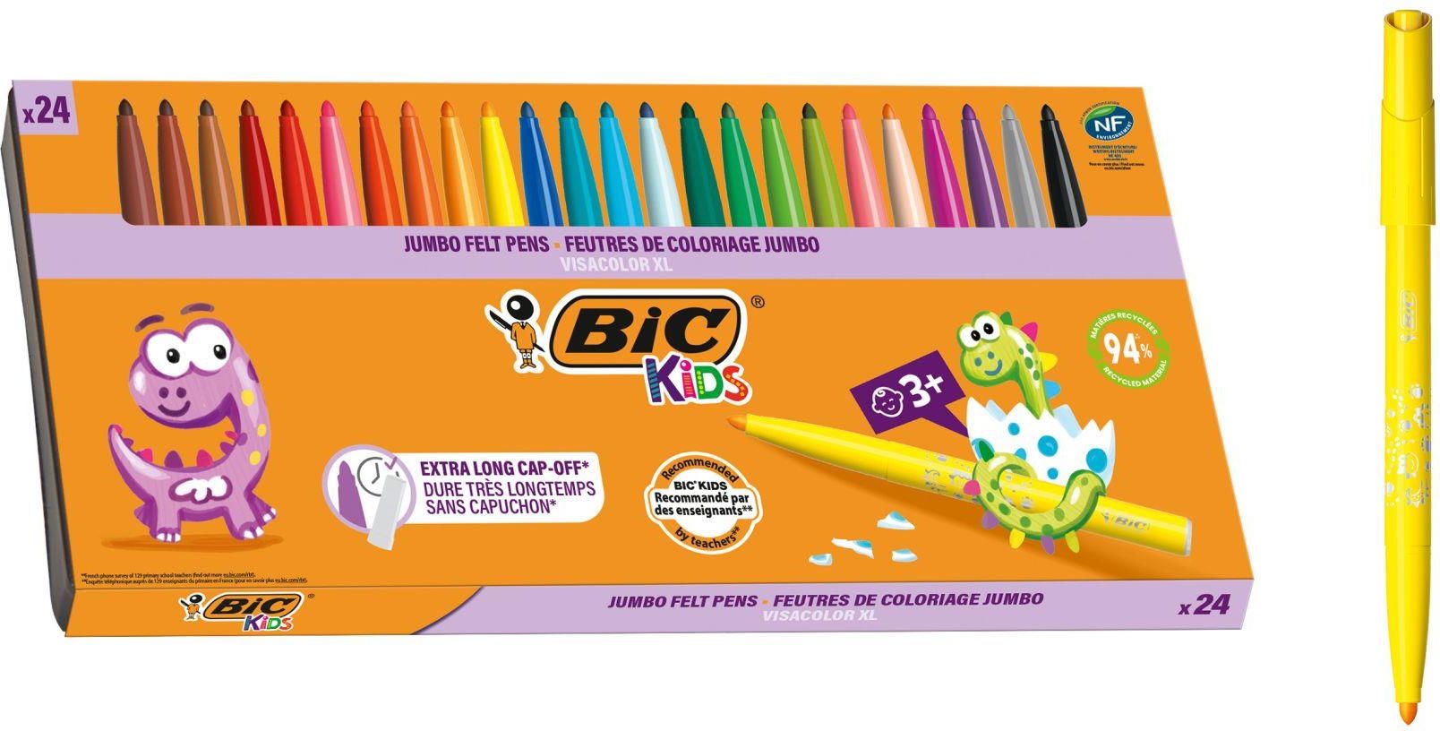 Flamastry BIC Kids Visacolor XL ECOlutions 24szt. BIC ✅ ✔️ Flamastry BIC Kids Visacolor XL ECOlutions mają szeroką końcówkę i okrągły korpus, dzieki któremu są poręczne i łatwe do trzymania dla dzieci w wieku 3 lat i starszych. Opakowanie zawiera 24 flamastry w żywych kolorach, które nie wysychają, …