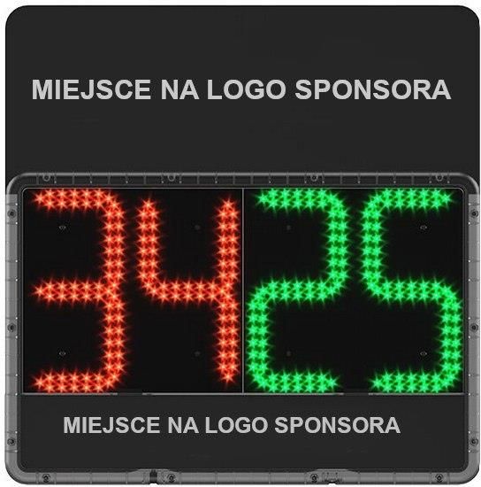 Elektroniczna tablica zmiany zawodników- dwustronna z podwójną przestrzenią na logo sponsora + walizka - Dwustrona - Wysokość liter: 23,5 cm (widoczność około 100 m) - Dioda LED-owa jasność 6000 cd/m2, żywotność ponad 2 miliony wyświetleń - Kolorystyka: zielona i czerwona - Miejsce na logo …