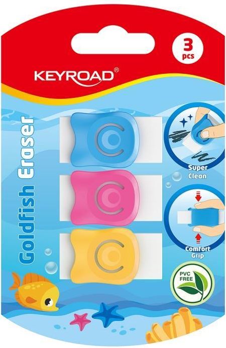 Keyroad Gumka Do Ścierania Goldfish Z Osłoną Blister 3Szt. Dobra