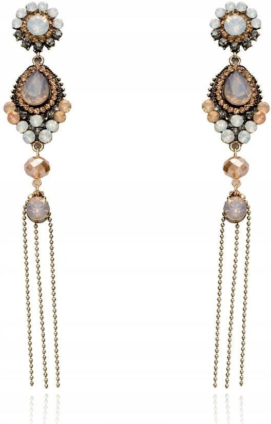 Kolczyki długie wiszące kryształ złote opalizujące Dobra