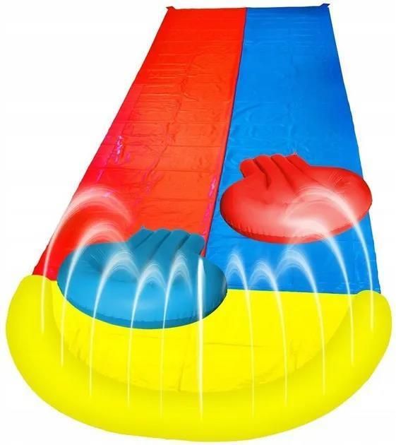 Podwójna Ślizgawka Wodna z Poduszkami od Madej Zabawna i bezpieczna śligzawka wodna idealna na letnie dni. Dwutorowa konstrukcja o wymiarach 5x1,5m pozwala na jednoczesną zabawę dwójce dzieci. W zestawie znajdują się także dwie poduszki o rozmiarach 60x80cm, wykonane z trwałego PVC, które zapewnią dodatkowy komfort i amortyzację przy zjeździe. Produkt jest łatwy do rozłożenia oraz bezpieczny w użytkowaniu. Doskonały wybór na każdy ogród, który dostarczy mnóstwo radości i śmiechu dzieciom. Wystarczy podłączyć wąż ogrodowy, aby ślizgawka była gotowa do użycia. Zapewnij swoim pociechom niezapomniane wrażenia i aktywny wypoczynek na świeżym powietrzu z podwójną ślizgawką wodną od Madej. EAN: 5903631425059