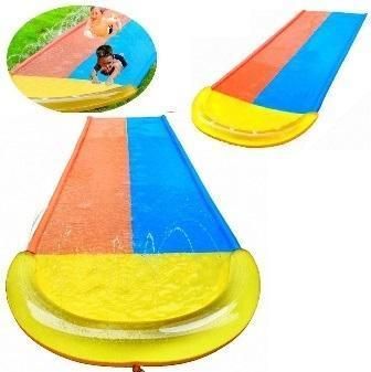 Mata Ślizgawka Wodna - 2-Tory Odkryj radość letnich zabaw dzięki podwójnej ślizgawce wodnej, która mierzy 5 metrów długości i 1,5 metra szerokości, wykonanej z wytrzymałego PVC. To idealne rozwiązanie na upalne dni, zapewniając mnóstwo śmiechu i ochłody dla najmłodszych. Ta dwutorowa ślizgawka pozwala na jednoczesną zabawę dwóm osobom, co gwarantuje podwójną dawkę emocji i rywalizacji. Solidny materiał i precyzyjne wykonanie sprawiają, że mata jest trwała i bezpieczna w użytkowaniu. Bezpieczeństwo i jakość to priorytet, dlatego PVC zastosowane w produkcji jest odporne na uszkodzenia i zapewnia długotrwałe użytkowanie. Spraw, aby każdy wakacyjny dzień był pełen radości i niezapomnianych wspomnień z naszą ślizgawką wodną. Wyzwij swoich przyjaciół na wodny wyścig i ciesz się beztroską zabawą w ogrodzie! EAN: 5903631425066