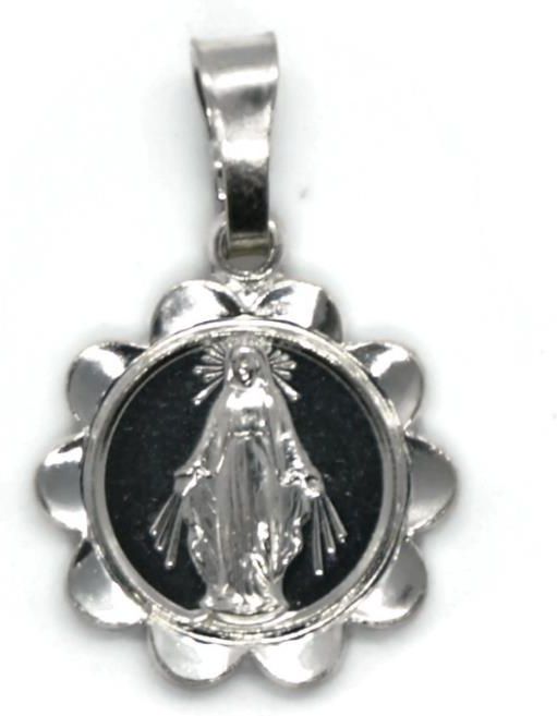Medalik srebrny z wizerunkiem Matki Boskiej Niepokalanego Poczęcia. Rewers medalika gładki. Biżuteria wykonana ze srebra próby 0,925. Waga: 2.0 g Metal: Srebro Ag 0,925 Wykończenie srebra: gładkie Wysokość (mm): 17 Wysokość wraz z uszkiem (mm): 23 Szerokość (mm): 15