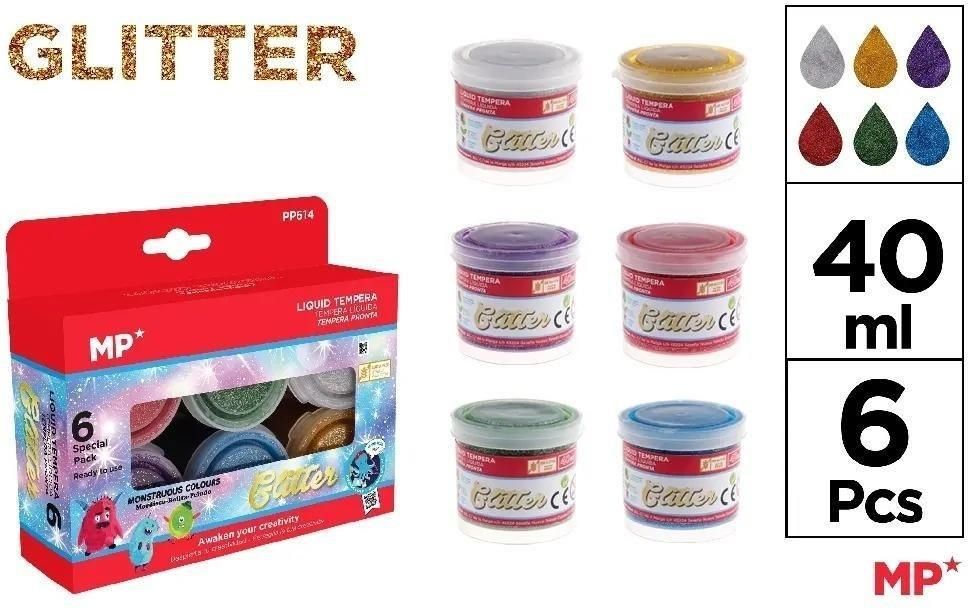 Barwne Farby Plakatowe Tempera Odkryj farby plakatowe tempera, które wzbogacą twoje projekty o wyjątkowy blask. W zestawie znajduje się sześć różnych kolorów, które pozwolą ci puścić wodze fantazji i dać wyraz swoim artystycznym pomysłom. Każda z butelek zawiera 40 ml intensywnej farby, starannie zapakowanej przez producenta MP. Twórcze Możliwości Dzięki tej różnorodności barw możesz tworzyć zarówno subtelne, jak i wyraziste dzieła. To idealny produkt do zastosowania w domu, w szkole czy w pracowni artystycznej. Wzbogacenie prac o brokatowy połysk doda im wyjątkowego charakteru. Praktyczne Opakowanie Farby są zapakowane w kompaktowe opakowanie, co ułatwia ich przechowywanie i transport. To świetny pomysł na prezent dla każdego, kto uwielbia tworzyć i eksperymentować z kolorami. EAN: 8435464206224