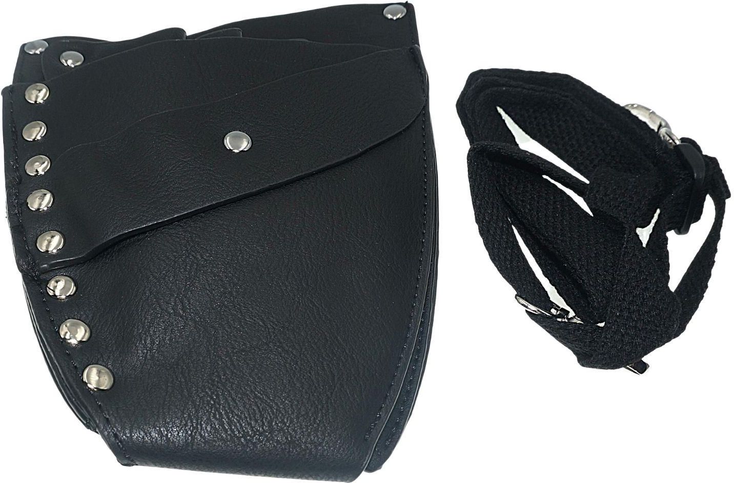 Profesjonalna kabura na akcesoria fryzjerskie z różnymi przegrodami na nożyczki, grzebienie, klipsy i inne narzędzia. Zapinana na pas. 2 przegrody główne , 5 przegród na nożyczki , dwa paski zewnętrzne umożliwiają przypięcie narzędzi. W zestawie pasek do przypięcia na ubranie lub do spodni. Wymiary : 14,5 x 21,5 cm, kolor czarny faktura kabury - skóra