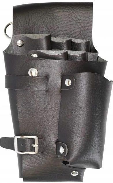 Profesjonalna kabura na narzędzia. Regulowana długość paska. Posiada trzy kieszenie (w tym jedna na wierzchu) plus pięć przegród na nożyczki. Wymiary: 225 x 120 mm