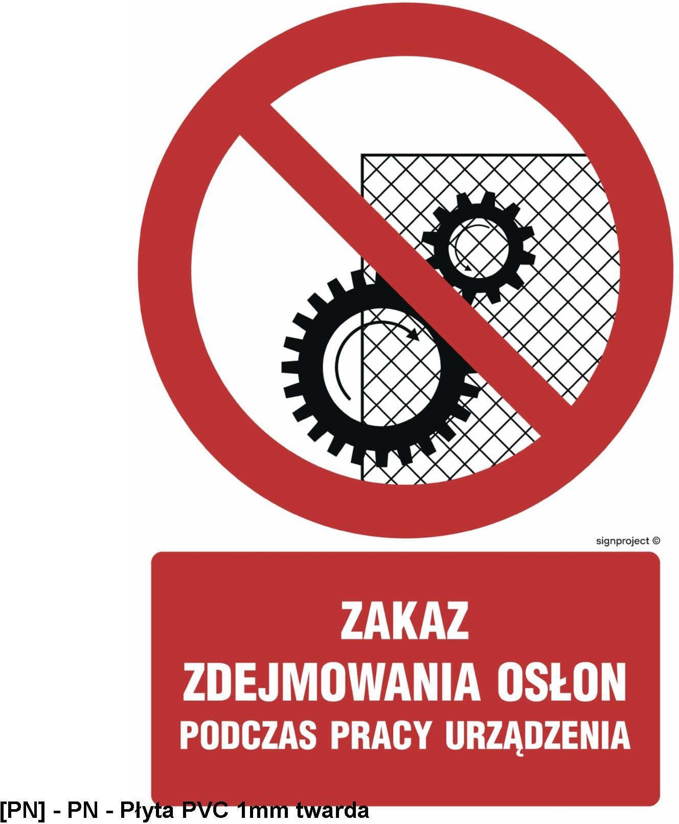 Signproject GC044 - Zakaz zdejmowania osłon podczas pracy urządzenia 700x1050 Dobra