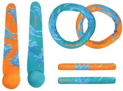 Zestaw zabawek do wyławiania Spokey DIVING SET Zestawzabawek do wyławiania Spokey DIVING SET jest idealnydo doskonalenia umiejętności pływania i nauki nurkowania, tosześć zabawek wykonanych z najwyższej jakości neoprenu wypełnionego piaskiem: dwa pierścienie, dwie pałki i dwie piłki z ogonkami. …
