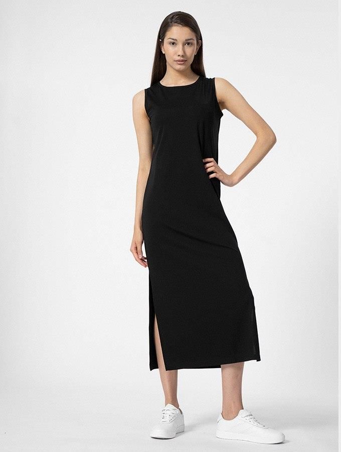 Sukienka 4F 4FSS23TDREF049 20S Ta sukienka ołówkowa to idealny wybór dla kobiet, które cenią sobie wygodę i styl. Długość do kostek oraz ołówkowy fason podkreślą atuty Twojej sylwetki, a dodatek elastanu zapewni swobodę ruchów. Sukienka jest uszyta z prążkowanej dzianiny, która jest przyjemna w dotyku i trwała. Szersze ramiączka oraz rozcięcia po bokach zapewnią jeszcze większy komfort noszenia. Ta sukienka będzie doskonałym wyborem dla każdej kobiety, która chce wyglądać modnie i czuć się swobodnie.. Cechy długość do kostek, szersze ramiączka, okrągły dekolt, ołówkowy fason dopasowany do sylwetki, rozcięcia po bokach dla lepszej swobody ruchów; przyjemna dzianina z dodatkiem elastanu zapewni wygodę podczas codziennych aktywności. Materiał Wiskoza 68% Poliamid 27% Elastan 5%