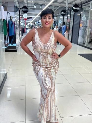Zjawiskowa długa sukienka uszyta z rozciągliwego materiału udekorowana w całości cekinami. Sukienka idealnie dopasowuje się do ciała . Piękny wycięty dekolt ozdobiony prześwitującą siateczką. Wszyte miseczki pozwalają na nie zakładanie biustonosza. Sukienka zapinana na zamek . Model w stylu rybki,tył z lekko wyciętymi plecami. Kreacja idealnie sprawdzi się na wesele dla gościa oraz na wszystkie inne ważne okazje. Sukienka szyta w rozmiarach od 34 - 40 Tabela wymiarów danego modelu sukienki (wymiary podane w centymetrach) rozmiar biust biodra pas 34 76-90 80-90 62-72 36 78-92 82-96 66-76 38 82-96 86-104 68-78 40 84-98 96-114 70-80 42 86-100 98-116 72-82 Ponieważ sukienki szyte są na dwu szwalniach bardzo prosimy przed zakupem o kontakt telefoniczny lub mailowy z podaniem swoich wymiarów. W ten sposób dużo łatwiej i bezpieczniej będzie dobrać odpowiedni rozmiar lub odpowiednią sztukę ze względu na delikatne różnice w wymiarach. Lepiej dobrze ustalić niż wymieniać :)