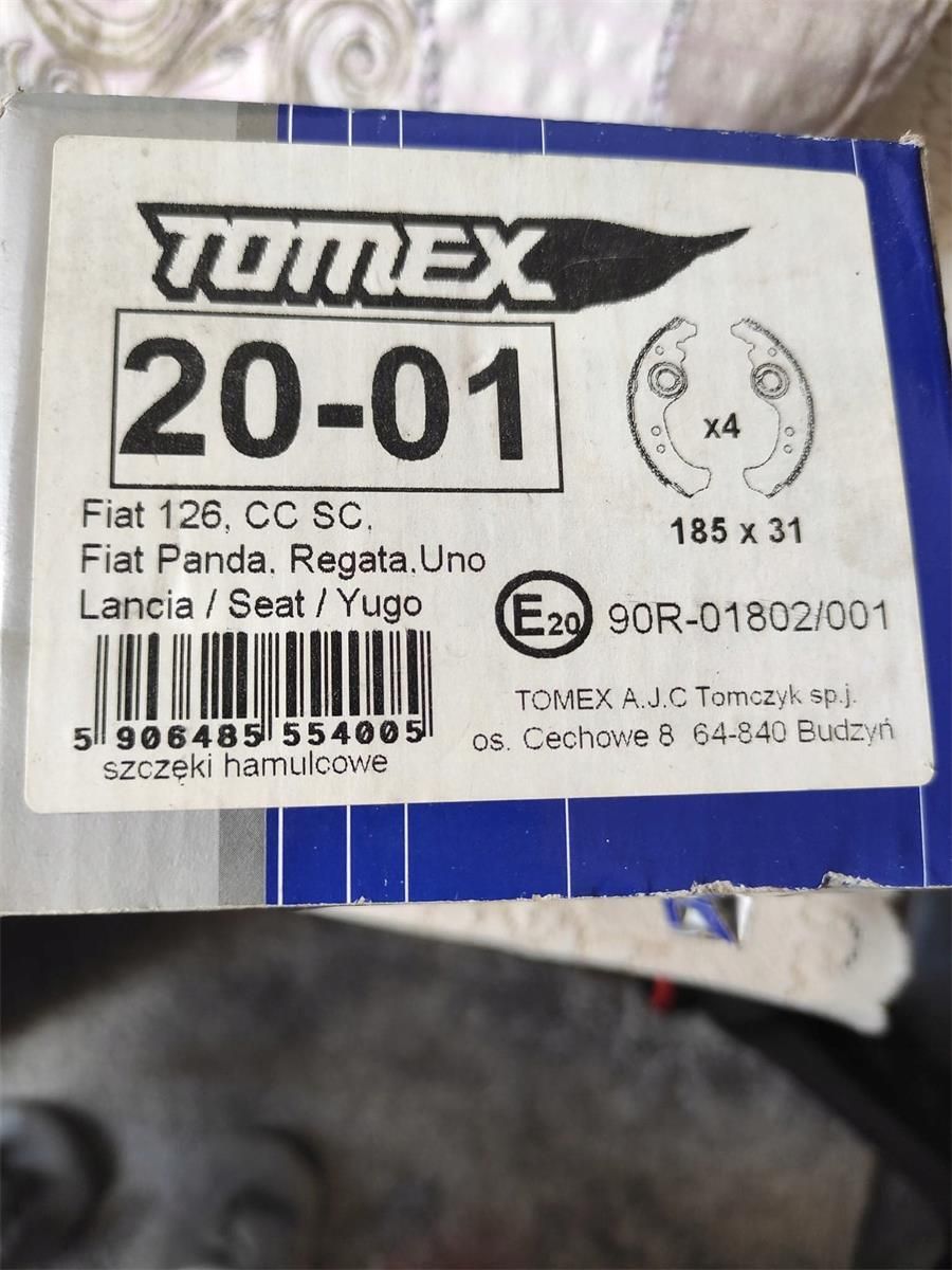 TOWAR FABRYCZNIE NOWY, ORYGINALNIE ZAPAKOWANY SZCZĘKI HAMULC. FIAT SEICENTO RENOMOWANEJ FIRMY: TOMEX Numer katalogowy: 2001/TOM Informacje: Szerokość [mm]: 31 Średnica wewnętrzna bębna hamulca [mm]: 185 Ciężar [kg]: 1,08 Kod: TX 20-01 Producent: TOMEX BRAKES GenArtName: Zestaw szczęk hamulcowych EAN: 5906485554005 NUMERY OE CZĘŚCI 03.0137-0015.2, 034043, 0986487030, 1037, 109901001, 1300150, 15006, 2141010059, 2723383, 2830309, 3516112, 360219196290, 361003B, 39722199, 401501, 4162186, 4431356, 4431356, 5181609, 530063, 562004, 57201114, 5881040, 6016, 655881040, 8004, 8027, 810015383, 83005900, 8DB355000091, BB1013A1, BBF544, BBS6244, C0F001ABE, FBS562, FSB027, GS8160, H1055, K6023000, LS1107, M553, MFR45, MG103, S23501, SH1160, 034084, 0986487350, 1227, 360219196433, 361003J, 361308B, 39722399, 401700, 4162186, 4382264, 562675, 5881214, 5881214, 5888144, 5888144, 810015486, 83005901, 8DB355003091, BS544, FSB27, LS1290, Q0005, 1396, 361308J, 380254, 4216652, 425801, 43523735, 4460028, 562761, 6557201119, 8DB355003121, 91005900, 94973449, 985853528, 985853528, 986487030, LS1453, Q0300, 4352373, 53721199, 5880891, 6557201124, 91030100, 95880891, SE021165299A, SE021165299A, 43523735, 557201199, 5880893, 91049800, SE022165299A, SE022165299A, 4373442, 57201114, 5881040, 91052000, SE028165299B, SE028165299B, 4382264, 5880891, 5881050, 98101005904, SE141165209A, SE141165209A, 46602666, 5881040, 5881214, 98101030104, SE4162186, SE4162186, 46619312, 588144, 5882011, 46619313, 5888144, 94973449, 46619464, 5889222, 95880891, 46619465, 5889286, 46627513, 5889289, 46627514, 5890763, 5880893, 7074668, 71738375, 77362292, 77362318, 77362424, 7736790, 985853528, 9948235, 9948237, 9948240 ZASTOSOWANIE
