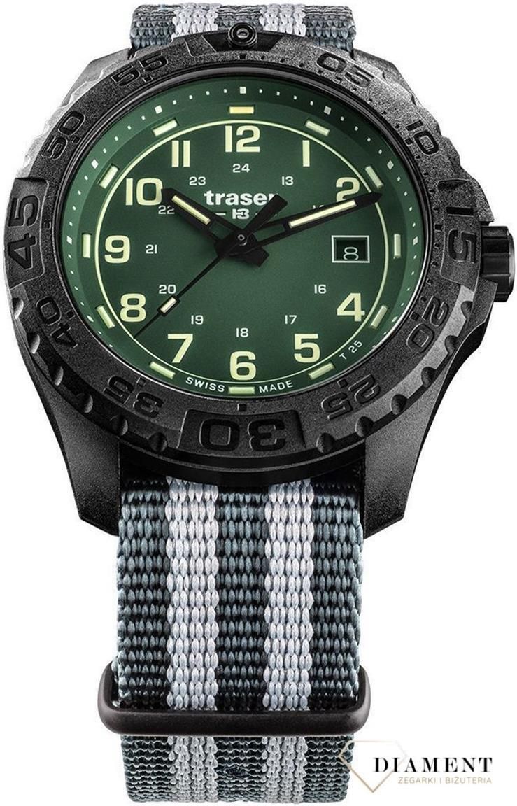 Popularna rodzina zegarków Outdoor Pioneer wzbogaciła się o bardzo udane modele o nazwie Evolution. Jak podpowiada nazwa linii, sporo elementów ewoluowało, zostało zmodyfikowanych nie tylko stylistycznie, ale i technicznie. Nowe modele OdP Evolution to większy wybór kolorów tarcz i atrakcyjny, dwukolorowy pasek tekstylny. Już na pierwszy rzut oka widać, że mamy przed sobą zegarek sportowy o militarnym zacięciu. Czarny kolor koperty, doskonała widoczność wskazań, zastosowanie lekkich materiałów daje nam poczucie, że mamy do czynienia z zegarkiem do zadań specjalnych. Za wytrzymałość odpowiedzialna jest koperta wykonana z polimeru zbrojonego włóknem szklanym. To super lekkie rozwiązanie jest zarazem ultra wytrzymałe na obrażenia zewnętrzne, absolutnie antyalergiczne, odporne na substancje żrące jak również posiada bardzo niską absorpcję termiczną. Oznacza to, że materiał ten nie nagrzewa się ani nie schładza jak dzieję się to np. ze stalą szlachetną w wyniku działania wysokich bądź niskich temperatur. Do palety kolorów tarcz doszły trzy nowe ciekawe barwy: zieleń, niebieski o morskim odcieniu oraz szary. Oczywiście mamy również dostępną w tej linii – najbardziej klasyczną – tarczę w kolorze czarnym. Przez dzień można cieszyć się oryginalnym ubarwieniem cyferblatu, ale dopiero po nastaniu zmierzchu zaczynają się prawdziwe atrakcje. Każdy z zegarków wykorzystuje bowiem manufakturową technologię o nazwie trigalight®, będące samowystarczalnym źródłem światła, działającym nieprzerwanie przez ponad 25 lat. To najdoskonalsza forma luminescencji stosowana w przemyśle zegarkowym. Jarzące się jasnozielonym światłem kapsułki wypełnione trytem wspomagane są przez masę Super LumiNova. Nią zostały pokryte cyfry arabskie oraz o-ring znajdujący się na tarczy. Każdy z modeli P96 ODP Evolution uszczelniony został by bez problemu wytrzymać ciśnienie rzędu 20 atmosfer. Dzięki takiemu zabezpieczeniu można pływać i nurkować w nich do głębokości 100 metrów. Normą w tej linii jest także zastosowanie szkła szafirowego z wewnętrznym antyrefleksem co czyni odczyt wskazań czasu jeszcze wyraźniejszym i przejrzystym. Jako system mocowania na nadgarstku mamy do wyboru zarówno opcję na pasku tekstylnym oraz nowe rozwiązanie, jakim jest skórzany pasek w stylu NATO, dodający zegarkowi wyrazistego charakteru. Dla amatorów pasków gumowych dedykowany został również model na czarnym kauczuku z klasycznym zapięciem. Dla osób szukających wytrzymałego zegarka sportowego z doskonałymi parametrami, jak najlepszej czytelności wskazań oraz militarnym wyglądzie linia P96 OdP Evolution będzie idealnym rozwiązaniem. Więcej zegarków wojskowych znajdziesz TUTAJ! Nasz sklep internetowy z zegarkami Traser jest autoryzowanym dystrybutorem marki. Wszystkie męskie zegarki Traser zakupione w naszym sklepie posiadają 4 letnią gwarancję na terenie Polski i 10 letnią na podświetlenie trigalight®. Każdy zegarek Traser zapakowany jest w oryginalne opakowanie producenta.