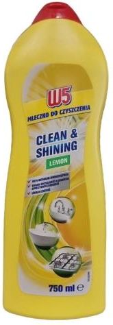 W5 Mleczko do czyszczenia cytrynowe 750 ml Mleczko W5 to skuteczny i uniwersalny środek do czyszczenia. Efektywnie usuwa zabrudzenia każdego typu bez konieczności szorowania. Użyj mleczka do czyszczenia Lemon i pozbądź się najbardziej uporczywych zabrudzeń z kuchni i łazienki. Usuwa osady z kamienia, zaschnięty tłuszcz i oporne plamy, pozostawiając długo utrzymujący się przyjemny zapach. Mleczko usuwa zabrudzenia z takich powierzchni jak: wanny, brodziki, zlewy, umywalki, powierzchnie chromowane, emaliowane i glazurowane. Cytrynowy zapach na długo pozostawi powierzchnie pachnące świeżością. Cechy: 100% naturalne mikroskładniki wysoka skuteczność w usuwaniu uporczywych zabrudzeń lśniąca czystość Pojemność: 750 ml