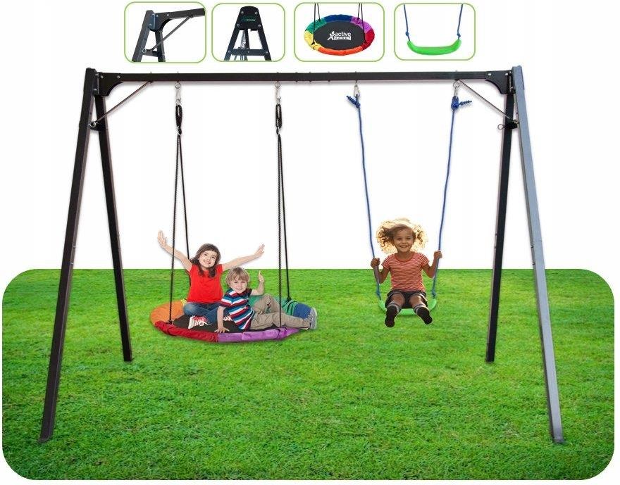 Active Hobby Podwójna Huśtawka Ogrodowa Ze Stelażem Linami Siedziskiem Bocianie Gniazdo Dobre Miasto