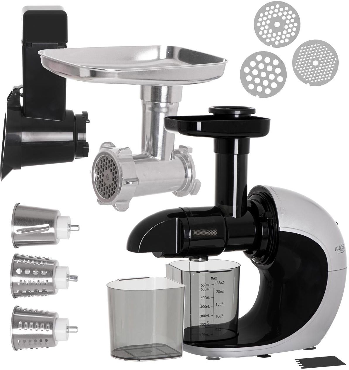 Wyciskarka wolnoobrotowa 3w1 Wyciskarka wolnoobrotowa Maszynka do mielenia mięsa Szatkownica do warzyw Od 90 do 105 obrotów na minutę | Moc: 150W | Cicha praca | Prosta obsługa tylko 1 przycisk: Włącz, start, wsteczny | Łatwe w czyszczeniu | Zabezpieczenie przed przegrzaniem Maszynka do mielenia …