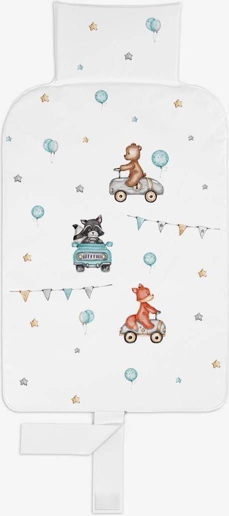 Przewijak podróżny NEW Przewijak podróżny (PP), czyli inaczej składana mata do przewijania. Wymiar rozłożonej maty to długość 77 cm i szerokość 44 cm (+/-2 cm), w łatwy sposób składa się ją do mniejszych wymiarów, które wynoszą po złożeniu około długość 20 cm i szerokość 29 cm. Zajmuje mało miejsca w torbie dziecięcej. Świetnie sprawdzi się podczas spaceru, podróży lub poza domem. Pokryty jest bezpieczną dla skóry dziecka folią, niezawierającą ftalanów. Wypełnienie przewijaka podróżnego stanowi pianka poliuretanowa, która zapewni miękkie leżenie dziecku na twardych powierzchniach. Przewijak podróżny łatwo utrzymać w czystości, wystarczy przetrzeć go mokrą chusteczką. Produkt należy stosować pod opieką osoby dorosłej! Produkt został wyprodukowany w Polsce z wysokiej jakości materiałów posiadających certyfikaty gwarantujące bezpieczeństwo dla najmłodszych. Producent informuje, że pokazana na zdjęciu kolorystyka może nieznacznie różnić się od rzeczywistego produktu. Stosowany nadruk jest ekologiczny i bezpieczny dla dziecka, może jednak delikatnie blaknąć podczas częstego użytkowania.W przypadku produktów występujących w różnych kolorach lub wzorach. Produkt wysyłamy jest losowo.