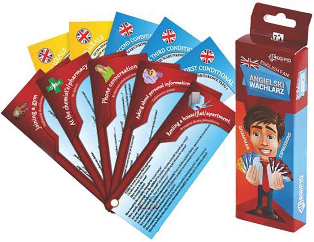 Wachlarz Angielski to kompendium wiedzy z języka angielskiego – angielski w pigułce, zawiera karty z częścią gramatyczną - GRAMMAR, jak również z przydatnymi w życiowych sytuacjach zwrotami - EXPRESSIONS. Doskonały sposób na przypomnienie kluczowych pojęć. Opakowanie zawiera 60 pasków złączonych ze sobą w formę wachlarza, na których zamieszczone są: informacje o angielskich czasach, zwrotach gramatycznych, czasownikach nieregularnych, formie biernej i wiele innych, na jednej stronie, przydatne w życiu codziennym zwroty na rewersach (na lotnisku, w hotelu, w restauracji i wiele innych). EAN: 5903111818210 Najczęściej zadawane pytania Czy powinno się uczyć samodzielnie języka obcego?Nauka języka obcego nie musi być kosztowna – osoba zainteresowana uczeniem się nie musi poszukiwać korepetytora bądź brać udział w kursie kosztownej szkoły językowej. Wiele rzeczy możemy zrobić samodzielnie, kiedy decydujemy się na podręcznik oraz ćwiczenia z zadaniami na odpowiednim poziomie. Konieczna również jest determinacja, ambicja i samodyscyplina. Z jakiego powodu warto kupić nowe książki z ćwiczeniami do nauki obcych języków?Ćwiczenia z zadaniami do nauki obcych języków stanowią świetny dodatek do nauki języka. W takich książkach znajduje się sporą ilość ćwiczeń, dzięki nim można poprawić swoje umiejętności pisania lub rozumienia tekstu na danym poziomie. Z pewnością warto zakupić nowy zeszyt ćwiczeń. W egzemplarzach używanych zadania będą już zapisane, co nie pomaga nauce.