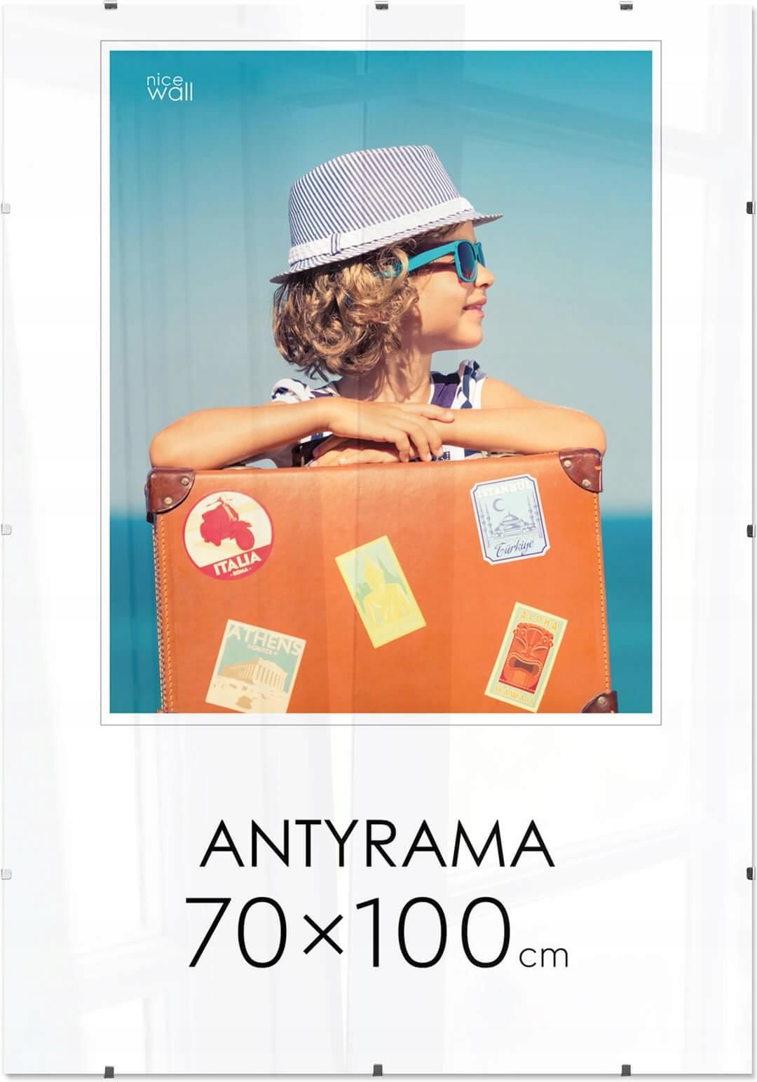 Chcesz oprawić plakat, rysunek lub zdjęcie ? Antyramy które oferujemy świetnie się do tego nadają. Wykonane z trwałych i ekologicznych materiałów, dostępne w różnych wymiarach a do tego w przystępnej cenie. Dlaczego warto wybrać antyramę do oprawienia plakatu bądź fotografii ? - front wykonany z bezpiecznej, lekkiej pleksy 0,9 mm która nie tłucze się tak łatwo jak szkło, - pleksa jest przejrzysta, fabrycznie zabezpieczona folią przed zarysowaniem, - plecy wykonane są z solidnej płyty HDF o grubości 3 mm, - wykonane przez polskiego producenta, kupując u nas wspierasz rodzimy biznes, - pleksa połączona jest z plecami metalowymi klipsami w 12 miejscach dzięki temu plakat lepiej do niej przylega, - każdy egzemplarz spakowany jest w białe, ekologiczne opakowanie kartonowe, - antyramę można powiesić w pionie bądź poziomie, służą do tego specjalne zawieszki umieszczone na plecach, Folię zabezpieczającą, która znajduje się na pleksie z obu stron, należy ściągnąć przed oprawianiem rysunku, plakatu bądź fotografii. Antyramy to najtańszy i estetyczny sposób na oprawienie Twoich rysunków, plakatów czy zdjęć. Dzięki zastosowaniu w naszych antyramach bezpiecznej plexi, są one lżejsze a w razie upadku ze ściany nie stanowią zagrożenia jak tłukące się antyramy szklane. Dzięki temu antyramy zakupione w naszym sklepie mogą być wieszane w miejscach gdzie bezpieczeństwo ma szczególne znaczenie a więc w przedszkolach, szkołach i innych miejscach publicznych.Wymiary antyramy 70x100 cm, Zbliżony do formatu antyramy B1