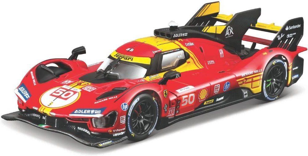 FERRARI RACING - 499P 24H LE MANS CHAMPION 2024 Producent: BBURAGO Grupa wiekowa: 14+ Opakowanie: EAN: 4893993363162 Ferrari 499P #50 LMH FIA 24h Le Mans Hypercar 2024 1:43 Bburago 18-36316 Ferrari 499P #50 oryginalny produkt marki Bburago, oficjalny, licencjonowany wzór pojazdu, metalowy model z plastikowymi elementami, perfekcyjne odwzorowanie szczegółów. Model z amknięty w ochronnej gablotce, umieszczony na plastikowej podstawce z nazwą pojazdu. Ruchome elementy: brak. Długość samochodu: ok. 10,5cm. Wymiary opakowania: 15 x 8 x 7cm. Ferrari 499P z numerem 50, prowadzone przez zespół Ferrari:AF Corse w sezonie FIA WEC 2024, to hipersamochód, który zapisał się w historii motorsportu. Za kierownicą Antonio Fuoco, Miguel Molina i Nicklas Nielsen osiągnęli spektakularne zwycięstwo w 24-godzinnym wyścigu Le Mans, zdobywając drugą z rzędu koronę dla Ferrari w tej prestiżowej imprezie. Samochód w czerwono-żółtej barwie Giallo Modena, nawiązującej do legendarnego 312 PB, zdobył także podium w Spa i Austin, kończąc sezon na drugim miejscu w klasyfikacji kierowców i trzecim wśród producentów. [Kod oferty,753954,4893993363162,2026-01-25 20:43:43]
