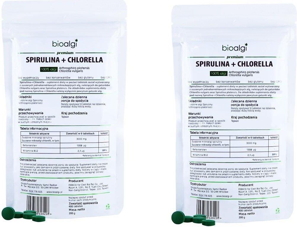 Bioalgi Naturalne Spirulina + Chlorella Witalność 2x400tabl. Dobre Miasto