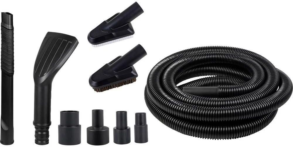 DEWALT DXVA13-0901E Zestaw akcesoriów do odkurzaczy przemysłowych 9 elementów Cechy produktu Uniwersalność dopasowania do różnych odkurzaczy – W zestawie znajduje się 9 akcesoriów w tym 3 adaptery, dzięki temu użytkownik może podłączyć zestaw do wielu modeli narzędzi. Kompatybilność i praktyczność – Akcesoria pasują do dowolnego odkurzacza przemysłowego marki DeWalt, co czyni zestaw wszechstronnym akcesorium. Dzięki adapterom możliwe jest podłączenie do wielu rozmiarów rur. To rozwiązanie ułatwia sprzątanie w warsztacie, garażu czy samochodzie. Wyposażenie standardowe Wąż 4,5 m Elastyczna końcówka szczelinowa 32 mm Końcówka „claw” 32 mm i 48 mm Szczotka miękka 32 mm Szczotka twarda 32 mm Adapter 64 → 32 mm Adapter 48 → 32 mm Adapter 35 → 32 mm Końcówka węża (hose end) Dane techniczne Średnica węża: 32 mm Długość węża: 4,5 m Adaptery w komplecie: 3 Ilośc akcesoriów w zestawie: 9