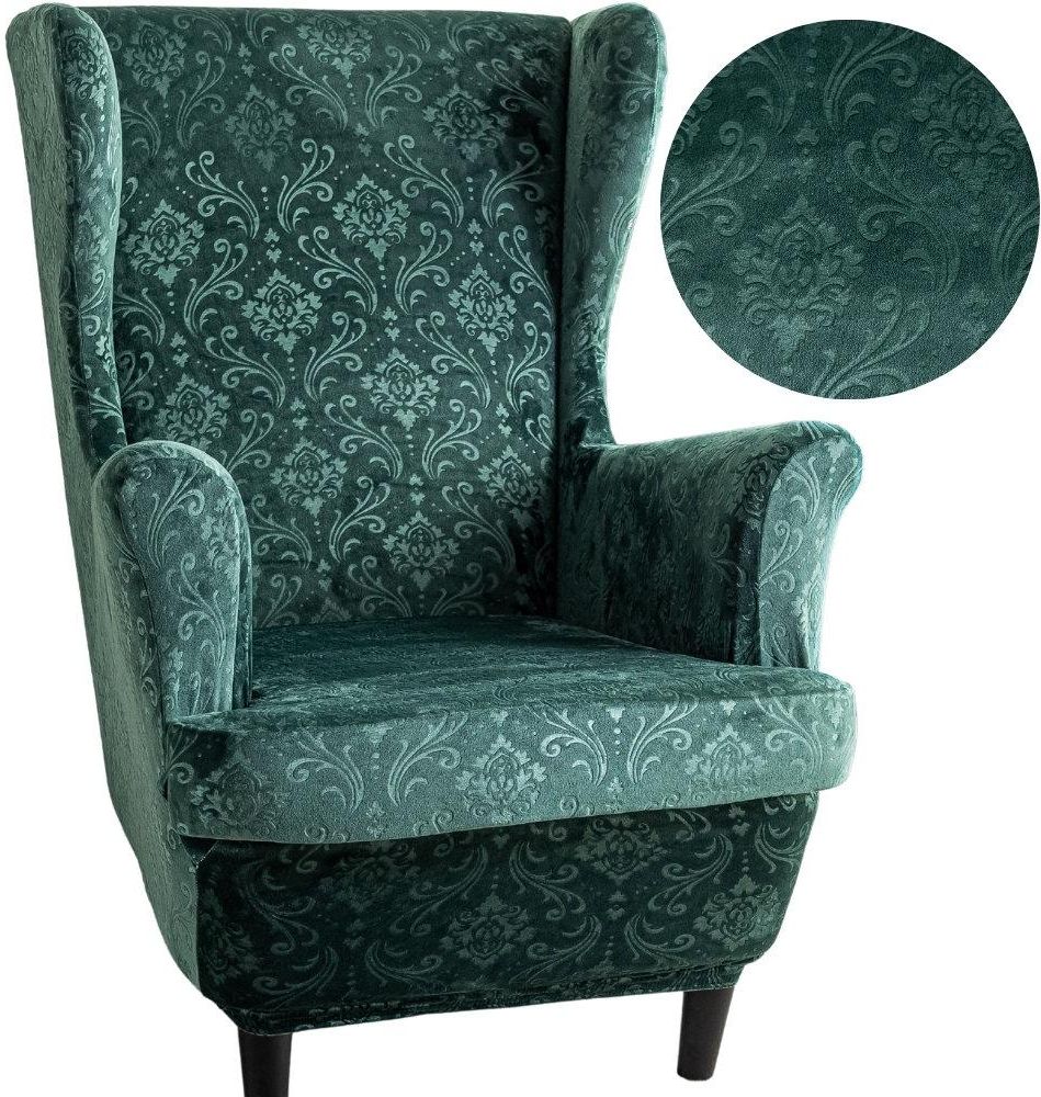 Domidekor Pokrowiec Na Fotel Uszak Welur Tłoczony Ornament Premium Zielony Elastyczny Zielony Dobre Miasto