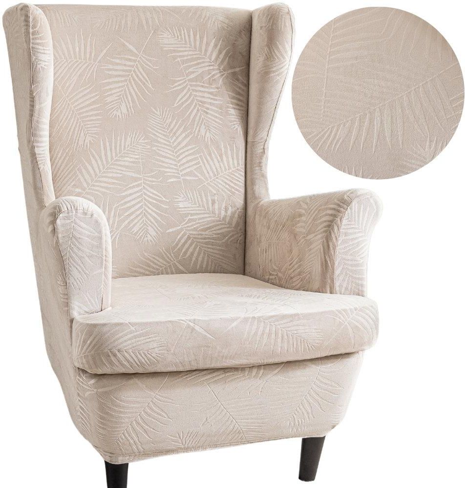 Domidekor Pokrowiec Na Fotel Uszak Welur Tłoczony Palmowe Liście Premium Elastyczny Beżowy Dobre Miasto