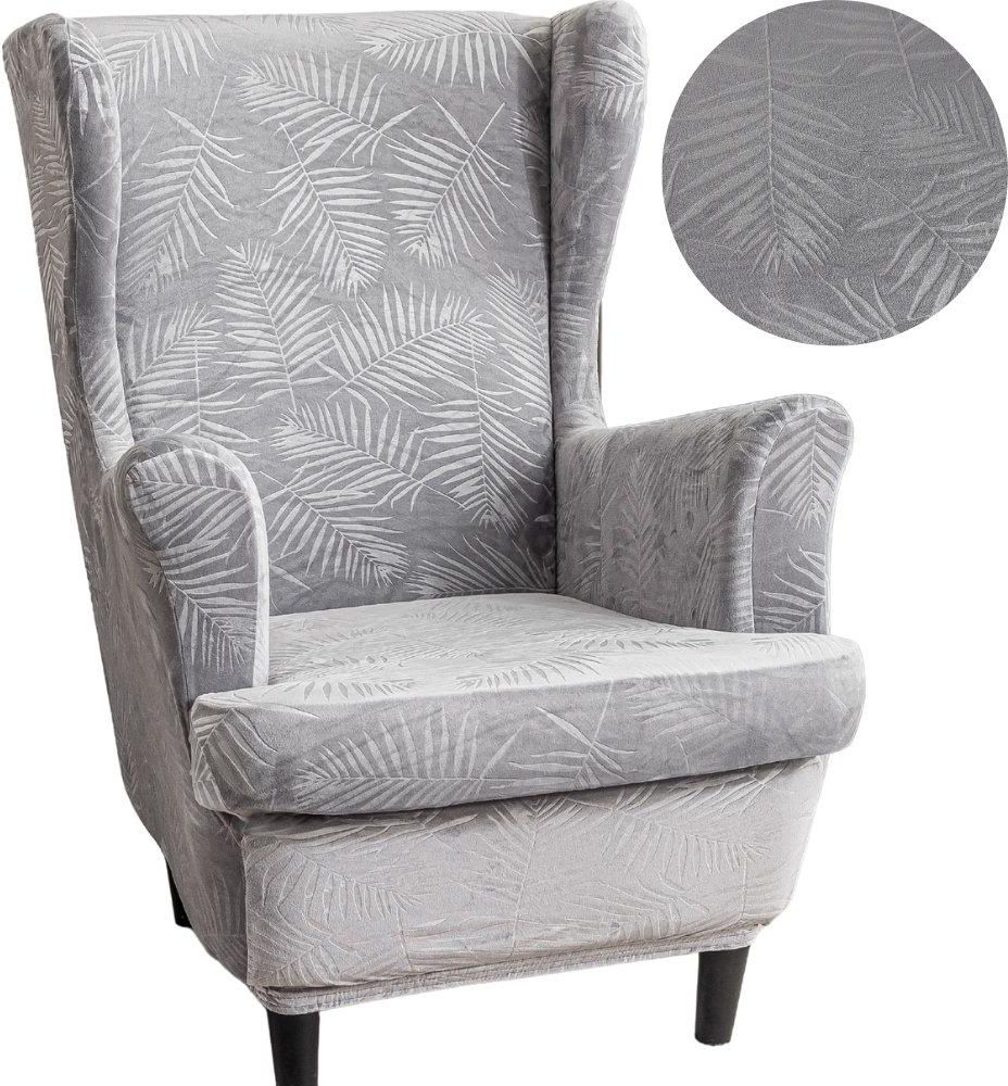 Domidekor Pokrowiec Na Fotel Uszak Welur Tłoczony Palmowe Liście Premium Elastyczny Szary Dobre Miasto