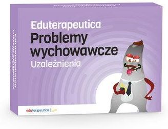 Problemy Wychowawcze Uzależnienia to program z serii Eduterapeutica pozwalający w sposób spójny i planowy wdrożyć działania zwiększające bezpieczeństwo psychologiczne i społeczne uczniów szkół podstawowych. Program pomaga w uświadomieniu mechanizmu powstawania uzależnienia, rozpoznawaniu symptomów oraz właściwego reagowania na zdarzenia. Przeznaczony jest dla szkoły jako placówki edukacyjnej, a jego poszczególne części i materiały są adresowane do: pedagogów i psychologów, którzy poza kluczową rolą w wypadku zaistnienia problemów związanych z uzależnieniami wspierają i przygotowują nauczycieli m.in. prowadząc wewnętrzne szkolenia; nauczycieli-wychowawców, którzy zawsze stanowią pierwszą, kluczową linię profilaktyki, rozpoznawania i reagowania na symptomy uzależnień; wszystkich nauczycieli w szkole, którzy podobnie do wychowawców powinni potrafić rozpoznawać problemy z zakresu uzależnień, odpowiednio na nie reagować, a także, przez tworzenie przyjaznego środowiska nauczania zapobiegać ich występowaniu. Przeciwdziałanie i rozwiązanie problemu uzależnień wymaga w pierwszej kolejności przygotowania do działań profilaktycznych wszystkich nauczycieli a szczególnie wychowawców. Z materiałów szkoleniowych nauczyciele dowiedzą się na czym polega uzależnienie, jakie są fazy uzależnienia, po czym można poznać, że uczeń jest uzależniony, jakie są czynniki ryzyka wejścia w uzależnienie, jak media i otoczenie przyczyniają się do uzależnień, jak pomóc uczniowi i jego rodzicom poradzić sobie z uzależnieniem, jak budować zdrową, silną i odporna na uzależnienia osobowość młodych ludzi. Zakres tematyczny modułu obejmuje nie tylko „klasyczne” uzależnienia od alkoholu, nikotyny i substancji psychoaktywnych, ale też inne formy i źródła uzależnień takie jak: gry komputerowe, Internet, zakupy, ryzykowne zachowania. Problemy Wychowawcze Uzależnienia zawierają komplet materiałów potrzebnych szkole do zapobiegania i reagowania na uzależnienia: opis obowiązków prawnych oraz propozycje tworzenia programu zapobiegania uzależnieniom w szkole, graficzne schematy procedur; poradniki, scenariusze, prezentacje multimedialne i kompletne materiały na wewnętrzne szkolenia nauczycieli prowadzone przez pedagogów i psychologów; narzędzia ułatwiające rozpoznanie uzależnień – formularze diagnostyczne scenariusze i materiały na lekcje wychowawcze – prezentacje multimedialne, karty pracy scenariusze i materiały na spotkania z rodzicami – m.in. ulotki informacyjne dla rodziców. Zestaw zawiera pendrive z 40 elektronicznymi dokumentami (poradniki, scenariusze, prezentacje multimedialne, ulotki, formularze) z możliwością użycia ich na ekranie i wydruku, poradnik metodyczny, gry na zajęcia wychowawcze w formie kartonowych elementów: 6 większych kół z symbolami różnych sfer naszego życia z białymi polami do umieszczania mniejszych kół (rodzina, rówieśnicy, szkoła, plan dnia, emocje w ciągu dnia, życie bez tego co nas może uzależniać), 12 mniejszych kół symbolizujących potencjalne źródła uzależnień – celowo wybrano obszary, które nie są w oczywisty sposób negatywne, a jednak mogą powodować uzależnienia, 12 dwustronnych kół z różnymi ocenami sytuacji, służących do wyrażania opinii przez uczniów. Zastosowane na kartonowych kołach ilustracje kojarzą się z ikonami stosowanymi w portalach społecznościowych, co sprawia, że są zrozumiałe nawet dla najmłodszych uczniów, a jednocześnie akceptowane nawet przez ósmoklasistów.