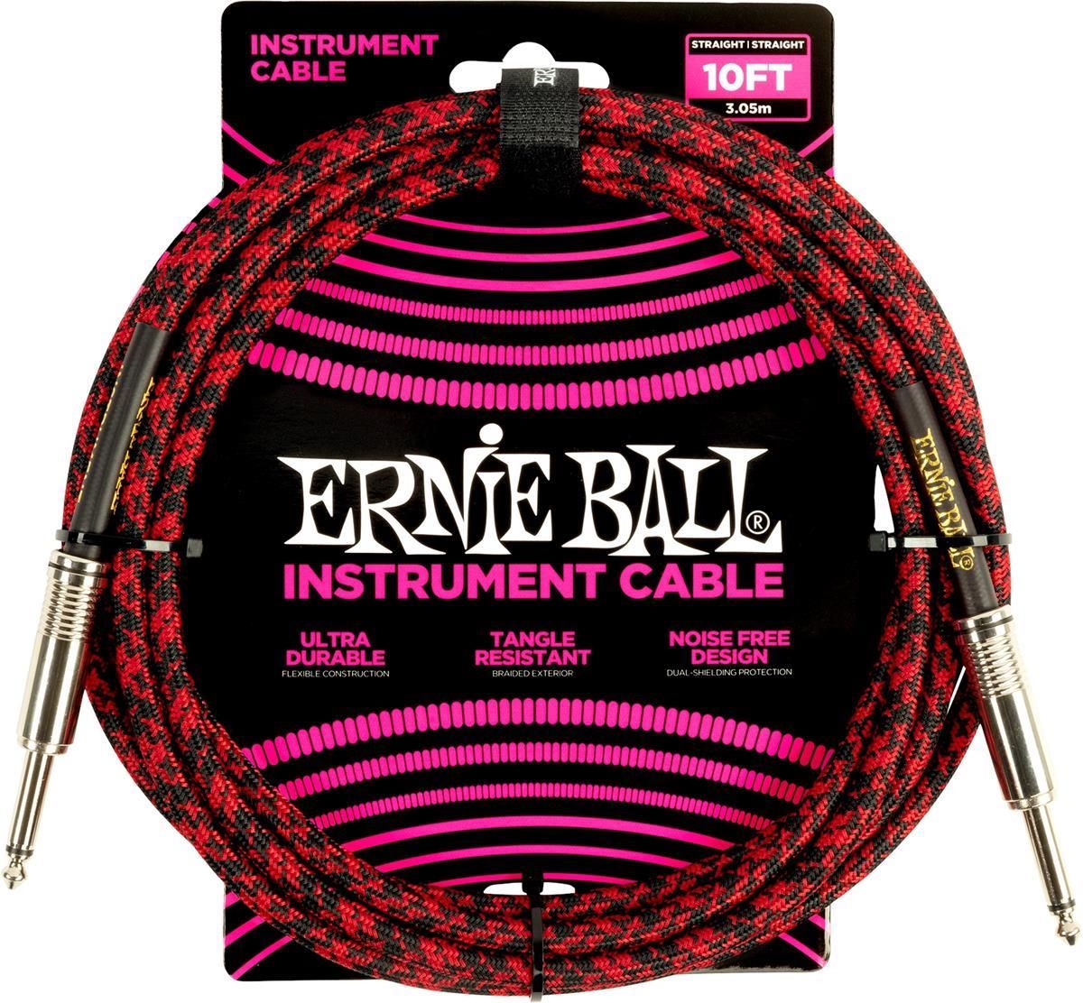 Ernie Ball Braided Straight Straight Inst Cable Czarny-Czerwony 3 m Prosty - Kątowy Dobre Miasto
