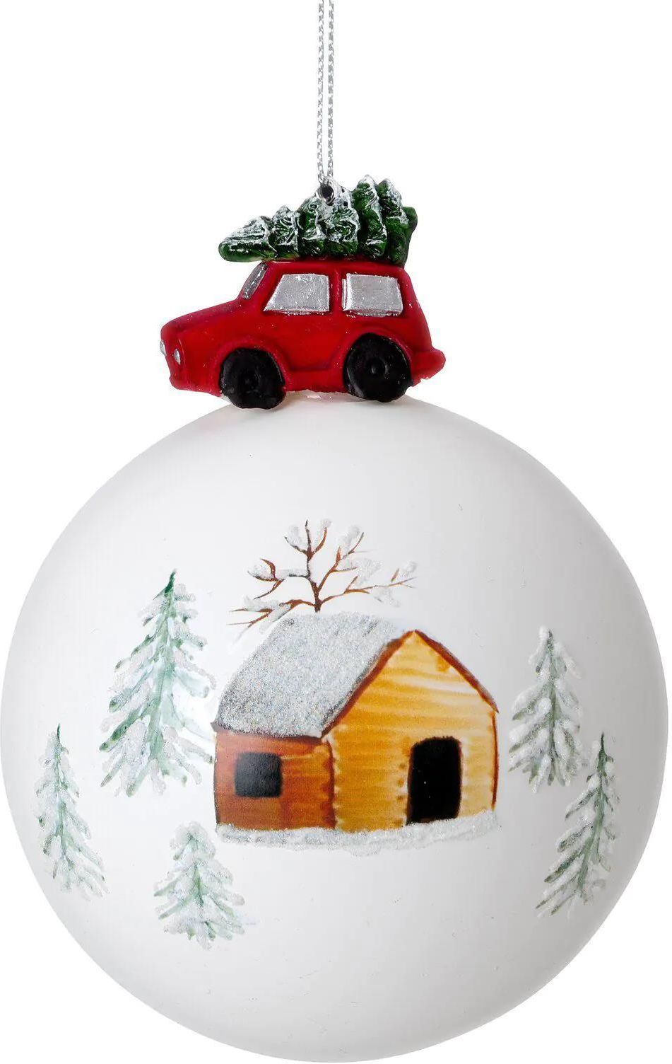 Eurofirany Bombka Świąteczna Szklana Choinkowa Sz499B 10cm Biała + Czerwona X4 Dobre Miasto