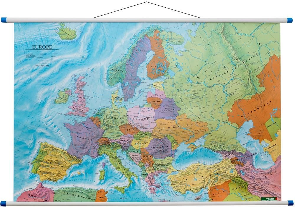 Europa - mapa ścienna polityczna w skali 1:6 000 000 wydawnictwa Freytag&Berndt, to jedyna mapa na rynku w takim rozmiarze. Mapa zawiera: stolice, większe miasta, wyraźne granice państw, główne rzeki, każde państwo oznaczone innym kolorem, Dodatkowo: Mapa jest dwustronnie laminowana folią strukturalną, przygotowana do zawieszenia, wykończona rurkami wraz z zawiesiem. Jeżeli jesteś zainteresowany innego rodzaju oprawą mapy, napisz do nas. Zrealizujemy dla Ciebie zamówienie indywidualne.