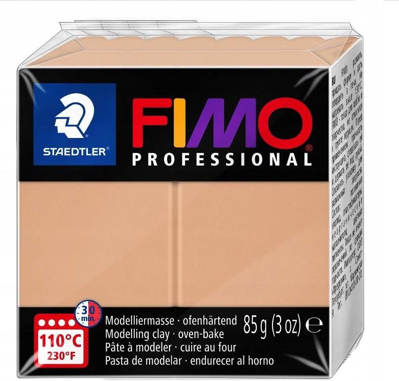 Staedtler FIMO PROFFESIONAL DOLL ART Masa termoutwardzalna CIELISTY CIEMNY nr 8004-45 Kostka o wadze 85g Najwyższej jakości masa termoutwardzalna do tworzenia biżuterii i dekoracji. Doskonały materiał dla profesjonalistów, artystów i zaawansowanych użytkowników. Do prac o skomplikowanych detalach. Zapewnia wyjątkową stabilność wymiarów, umożliwiając stosowanie zaawansowanych technik. Gwarancja dokładnych kolorów pośrednich dzięki czystym pigmentom. Praktyczna podziałka na 8 części ułatwia mieszanie kolorów. Utrwalana w piekarniku w temperaturze 110ºC przez 20-30 minut Po wypaleniu utrzymuje kształt i kolor Kolory można ze sobą mieszać, a także z masami Fimo (niezależnie od wariantu: Soft, Effect, Professional). Badana przez niezależnych toksykologów Przeznaczona dla dorosłych i dzieci w wieku szkolnym waga: 85g rozmiary: 55 x 55 x 24 mm dostępna w 24 kolorach