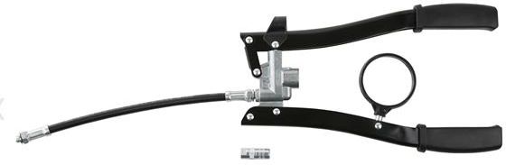 Najwyższej jakości smarownica dwuręczna marki FORCH. pełne wypróżnienie kartusza dzięki wykorzystaniu możliwości odsysania powietrza do 500g kartuszy z mocowaniem gwintowanym z 30 cm wężykiem oraz ustnikiem szybka i czysta zmiana kartusza wymiary: 350 x 195 x 30 mm w zestawie: przewód zbrojony, M 10 x 1a, 11 x 300 mm ustnik z 4 szczękami, M 10 x1