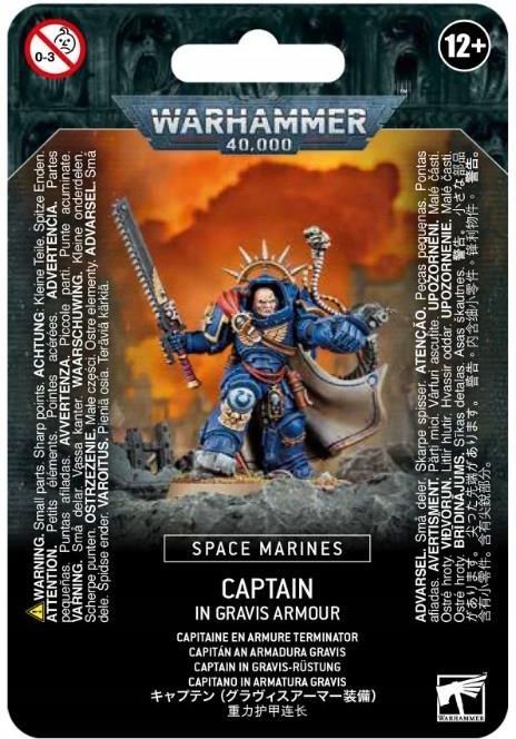 Kapitanowie to nieustraszeni przywódcy wśród Kosmicznych Marines, każdy z nich to mistrzowski taktyk i wyszkolony wojownik uzbrojony w różnorodną broń i sprzęt. Odziany w ciężką zbroję Gravisa kapitan może bez strachu wkroczyć w najbardziej zaciekłe burze ogniowe na polu bitwy. Noszenie zbroi Don Gravis to zademonstrowanie największej determinacji w zmiażdżeniu wroga, bez względu na to, jak głęboko jest on okopany. W terenie Kapitanowie Kosmicznych Marines inspirują podwładnych do coraz większych wyczynów, a także zadawania ogromnych obrażeń w walce wręcz i na odległość. Ten zestaw składa się z 25 plastikowych elementów, za pomocą których można złożyć 1 kapitana kosmicznych marines w zbroi Gravis wyposażonej w miecz łańcuchowy, miecz mocy lub pięść, a także rękawicę do burzy piorunów. Jest dostarczany z okrągłą podstawą 40 mm Citadel. Ta miniatura jest dostarczana niepomalowana i wymaga montażu – zalecamy użycie kleju Citadel Plastic Glue i farb Citadel.