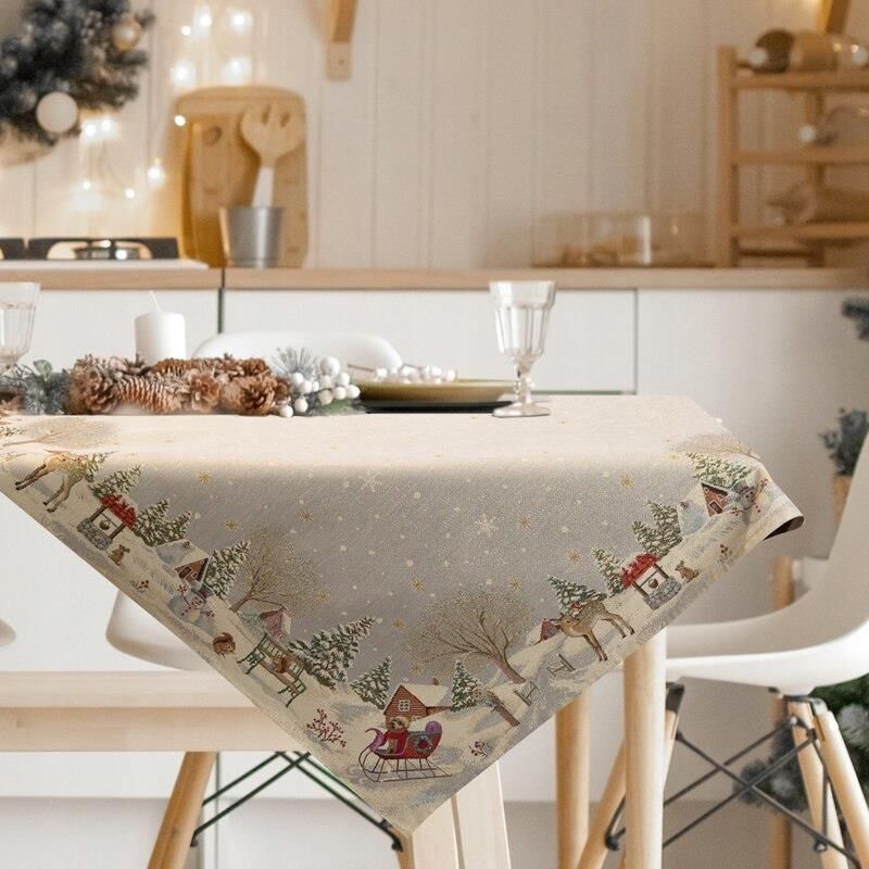 GOB/CHO/1163/ŚW 100X100 +/-5% EUROFIRANY 462398 Obrus gobelinowy ze świątecznym wzorem szerokość: 100 cm, długość: 100 cm, kolor: popielaty, Gramatura: 315 GSM, Skład: 53% poliester, 40% bawełna, 4% nić metaliczna, 3% akryl Parametry Kolor: POPIELATY Wymiar: 100 x 100 cm