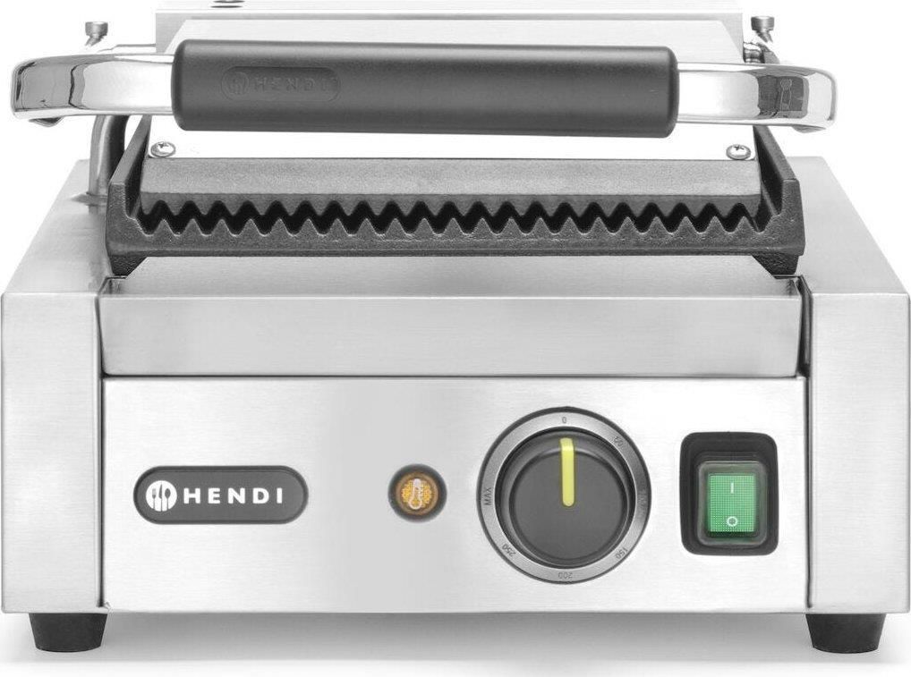 Numer producenta: 263501 Profesjonalny grill kontaktowy marki Hendi został wykonany z największą starannością. Urządzenie cechuje się wieloma zaletami, jak np. nowoczesnym i praktycznym Design, jest proste w obsłudze i konserwacji i posiada długą żywotność. Urządzenie służy do grillowania mięsa, można je wykorzystać do przygotowania tostów i innych potraw w celach przemysłowych w restauracjach, barach, hotelach itp. Cechy produktu: – wyposażony w pojedyncze stanowisko grillujące, ryflowane po obu stronach – góra i dół ryflowane – obudowa wykonana ze stali nierdzewnej – powierzchnia grzewcza wykonana z żeliwa z powłoką ceramiczną – korytko na tłuszcz i resztki pozostałe po grillowaniu – z przyciskiem włącz/wyłącz – termostat z płynną regulacją temperatury do 300C, lampka kontrolna – powierzchnia grillująca 220 × 230 mm – uchwyt podnoszony na wysokość 530 mm Parametry: – szerokość: 290 mm – głębokość: 370 mm – wysokość: 210 mm – moc: 1800 W – napięcie: 230 V W zestawie: – grill – szczotka do czyszczenia – instrukcja PL Grill kontaktowy